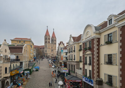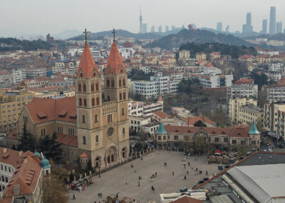 Uno dei luoghi più iconici è la Cattedrale di San Michele, costruita tra il 1932 e il 1934 in stile romanico, in granito color ocra. È la principale chiesa cattolica di Qingdao, simbolo evidente dell’eredità tedesca.