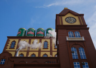 Ogni ora la fabbrica produce fino a 60 mila bottiglie, ma il dettaglio più curioso è che in città la birra può ancora essere spillata fresca in strada, attraverso delle tubature collegate allo stabilimento, direttamente in bottiglie riutilizzabili o addirittura in sacchetti di plastica, come fanno ancora tanti locali e turisti, una tradizione ancora viva dal passato più povero della regione.